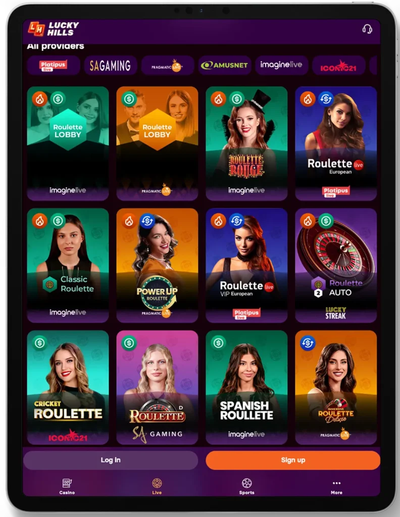 One of the developers is Pragmatic Play Live, a brand that provides innovative games like Sweet Bonanza Candyland and Mega Roulette with interactive features. We also collaborate with ImagineLive, Iconic21, Luckystreak, Vivo, Amusnet, Platypus, SA Gaming and XPG. Each of these developers has been nominated, recognised or awarded for their cutting-edge technology and games’ quality. For example, SA Gaming won the Best Live Casino Provider at the SiGMA Asia Awards 2024. The developers are licensed and highly reputable in the iGaming landscape.