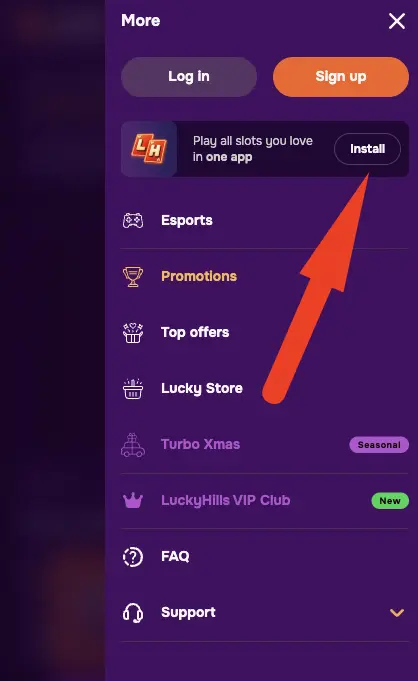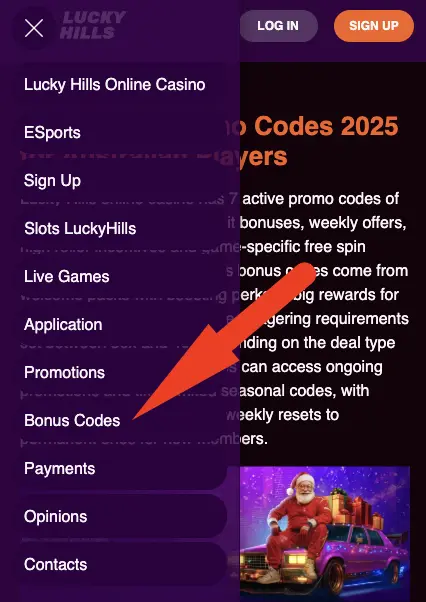 - Navigate to the LuckyHills bonus codes section.